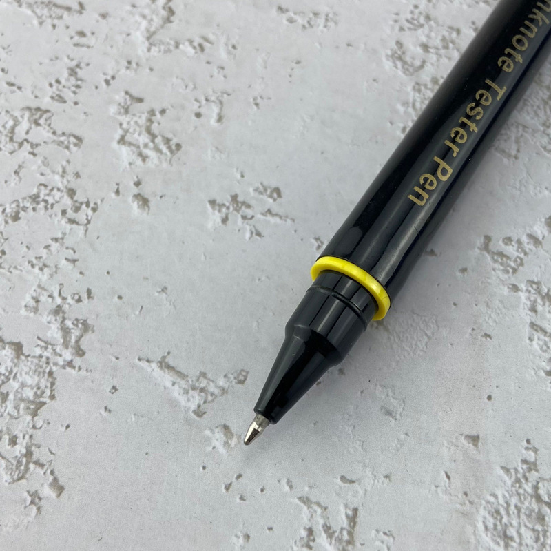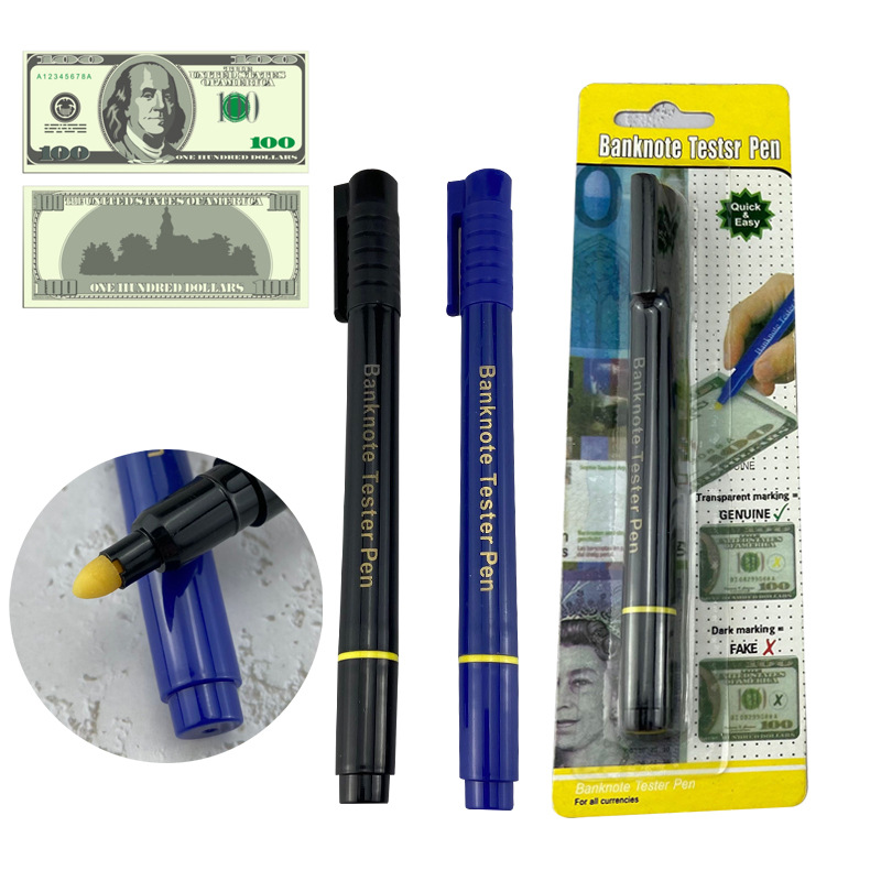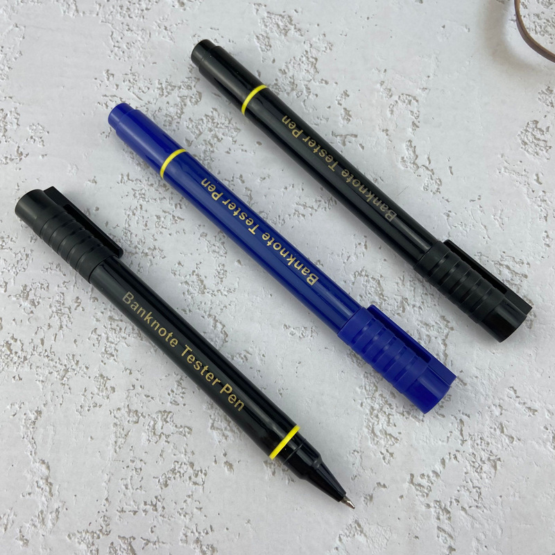 Маркер за бърза проверка на хартията на банкноти. При фалшива банкнота оставя видима следа, а при истинска – не реагира.